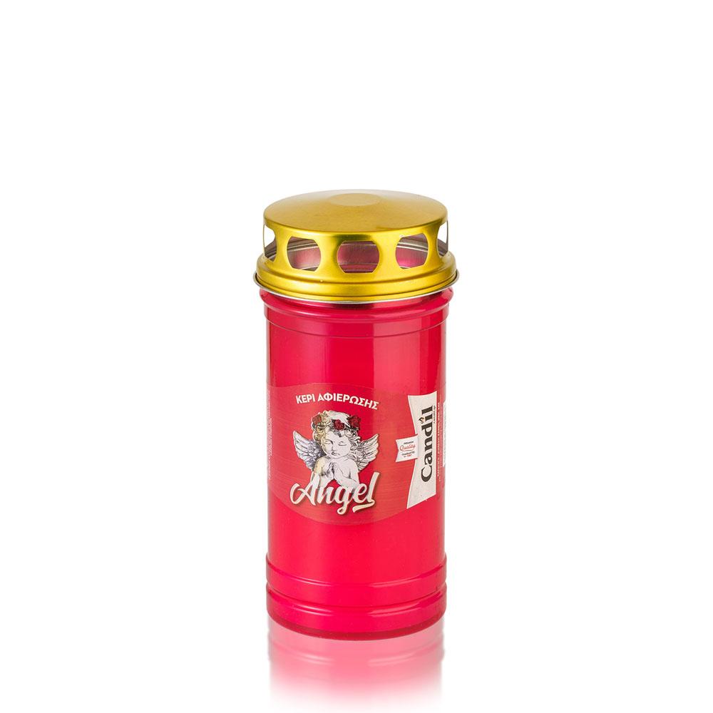 Κερί αφιέρωσης 80/16 Angel με αντιανεμικό καπάκι κόκκινο