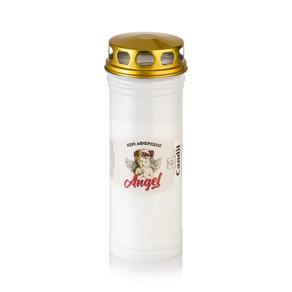 Κερί αφιέρωσης 80/21 Angel με αντιανεμικό καπάκι λευκό