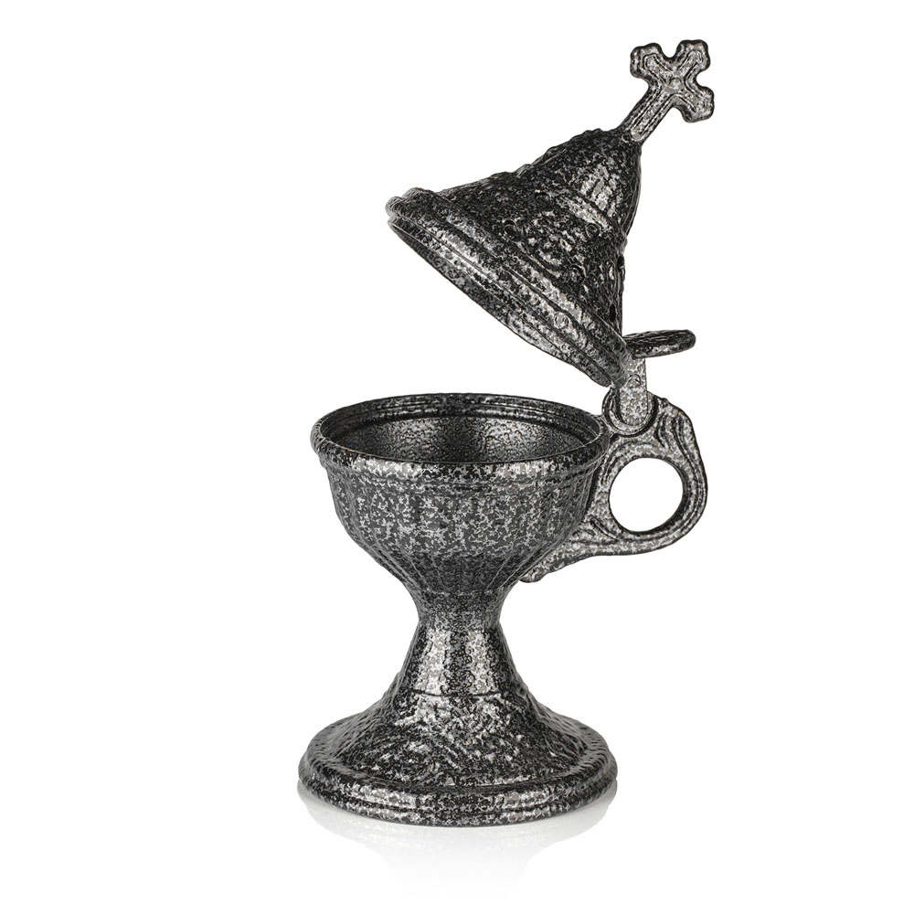 Μεταλλικό θυμιατο μεγάλου μεγέθους με καπάκι και ενσωματωμένη λαβή σε ανθρακί απόχρωση.